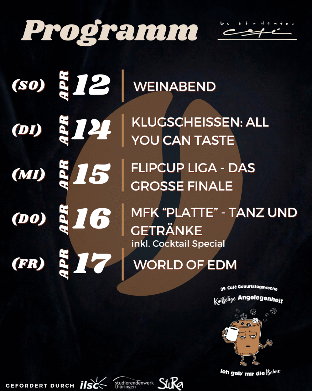 Wir laden euch gerne dieses Jahr zu unserer CGW ein, kommt gerne vorbei. Trinkt einen Tee oder Kaffee, nehmt am Klugscheissen teil oder entspannt zu Klängen der Musikalischen Freiluftkultur.